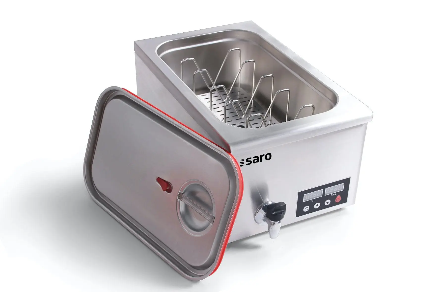 Saro RIVOLI. Produkttyp: Sous-Vide-Wasserofen, Produktfarbe: Edelstahl, Gehäusematerial: Edelstahl. Temperatur (min): 45 °C, Temperatur (max): 95 °C, Wassererwärmungsvolumen: 7 – 14 l. Leistung: 500 W, AC Eingangsspannung: 230 V, AC Eingangsfrequenz: 50 Hz. Breite: 360 mm, Tiefe: 402 mm, Höhe: 300 mm